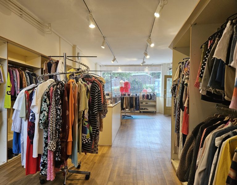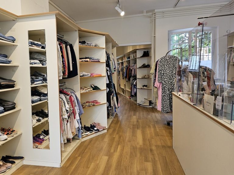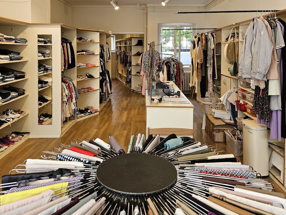 Eine sorgfältige Auswahl an moderner Second-Hand-Bekleidung, Schuhen und Accessoires für Frauen.